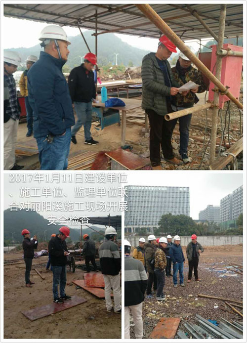 1月11日上午,由我公司投資建設(shè)的麗陽溪水系綜合整治工程、麗水盆地易澇區(qū)防洪排澇好溪堰水系整治三階段工程分別進行年前施工現(xiàn)場安全大檢查。檢查由項目監(jiān)理單位組織,其他參建單位參加。