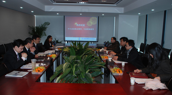 1月11日,中國(guó)中小企業(yè)協(xié)會(huì)劉永利主任、陳昱科長(zhǎng),浙江省中小企業(yè)局葉歡科長(zhǎng)及浙商銀行相關(guān)專(zhuān)家來(lái)我公司視察、指導(dǎo)工作。在陪同視察中,公司領(lǐng)導(dǎo)就公司沿革、經(jīng)營(yíng)模式和項(xiàng)目現(xiàn)狀進(jìn)行了詳細(xì)介紹,得到了各位領(lǐng)導(dǎo)及專(zhuān)家的高度認(rèn)可。(財(cái)務(wù)資產(chǎn)部 趙清 供稿)