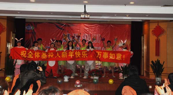 晚宴上,胡曉強(qiáng)總經(jīng)理代表公司給大家拜年,并表達(dá)了對(duì)全體員工及家人在新的一年的良好祝愿,最后大家舉杯共慶,祝?;兜?011更加精彩!