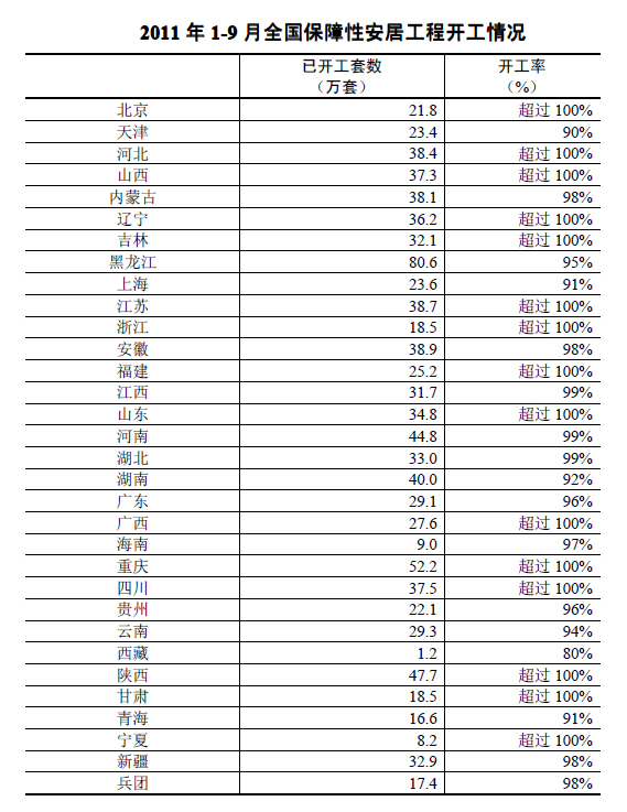 住房和城鄉(xiāng)建設(shè)部近日發(fā)布消息,截至9月底,全國城鎮(zhèn)保障性住房和棚戶區(qū)改造住房已開工986萬套,開工率98%。