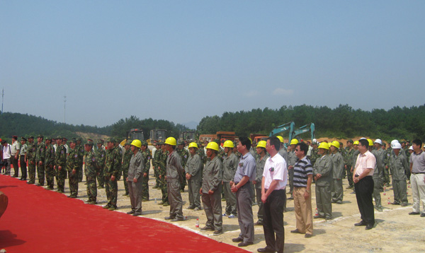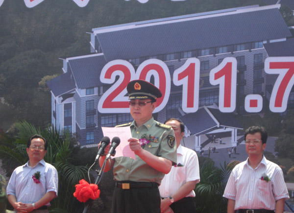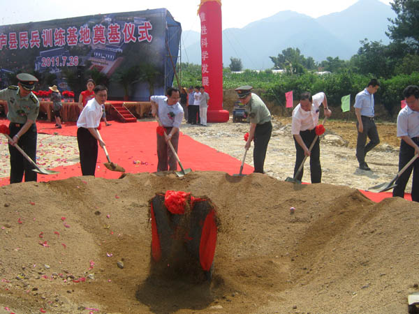 儀式由桐廬縣縣長陳國妹主持,杭州市市委書記黃坤明同志參加開工典禮并宣布工程開工,桐廬縣委書記戚哮虎、杭州市警備區(qū)政委陳必凱先后致辭。杭州市委常委、秘書長許勤華,市委常委、杭州警備區(qū)政委陳必凱,警備區(qū)司令員徐永淮,警備區(qū)參謀長張剛,市委副秘書長萬光政,桐廬縣領(lǐng)導(dǎo)竺泉海、游宏、程春明、鄒建生,縣人武部政委白宇等參加了奠基儀式。杭州市、桐廬縣多家媒體共同見證了項(xiàng)目開工奠基的重要時(shí)刻。
