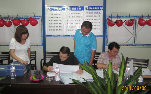 盧局長一行首先詳細查看了工程現(xiàn)場安全防護設(shè)施、后勤綜合樓及地下室施工情況、現(xiàn)場防暑降溫措施、鋼筋等原材的產(chǎn)地規(guī)格等情況,隨后又對工程資料進行了認真全面的檢查。