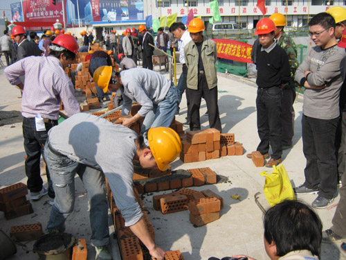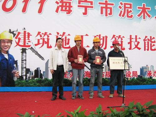 2011年海寧市泥木工協(xié)會建筑施工砌筑比賽在由我公司投資建設的海寧安置房項目施工現場順利舉行