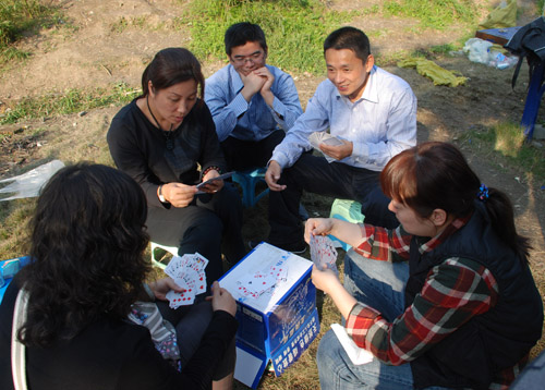 飯后,大家三五成群,或打牌娛樂,或席地而坐邊閑聊邊享受久違的陽光。在進行了簡單的小憩后,全員參加了“定向尋寶”大游戲。每組一個指北針,一張地圖,通過事先畫好的路線去尋寶。最后桐廬項目部的同事們以最快的速度完成了任務,并獲得了他們的戰(zhàn)利品——棒棒糖。