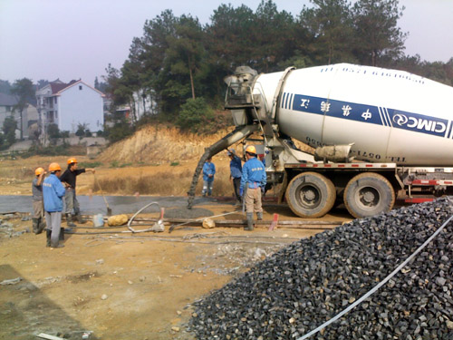 混凝土工程車(chē)現(xiàn)場(chǎng)澆注道路