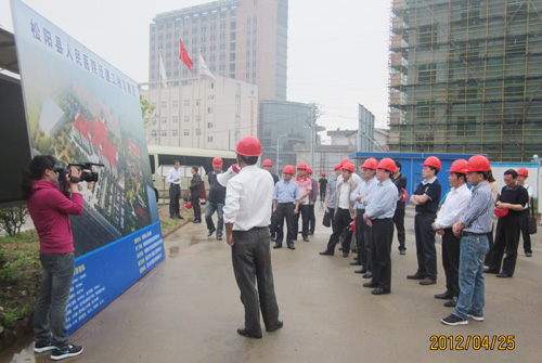 視察組實(shí)地察看住院樓建設(shè)情況