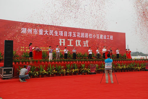 9月6日,由我公司投資建設(shè)的湖州市重大民生項(xiàng)目浮玉花園居住小區(qū)建設(shè)工程正式開工。湖州市人大常委會(huì)主任朱坤民宣布開工,湖州委常委、常務(wù)副市長楊建新致辭,湖州市政協(xié)副主席曹會(huì)明參加儀式。我集團(tuán)董事長胡曉強(qiáng)受邀出席了開工典禮并致辭。鄭則啟副總經(jīng)理也作為嘉賓出席了儀式。