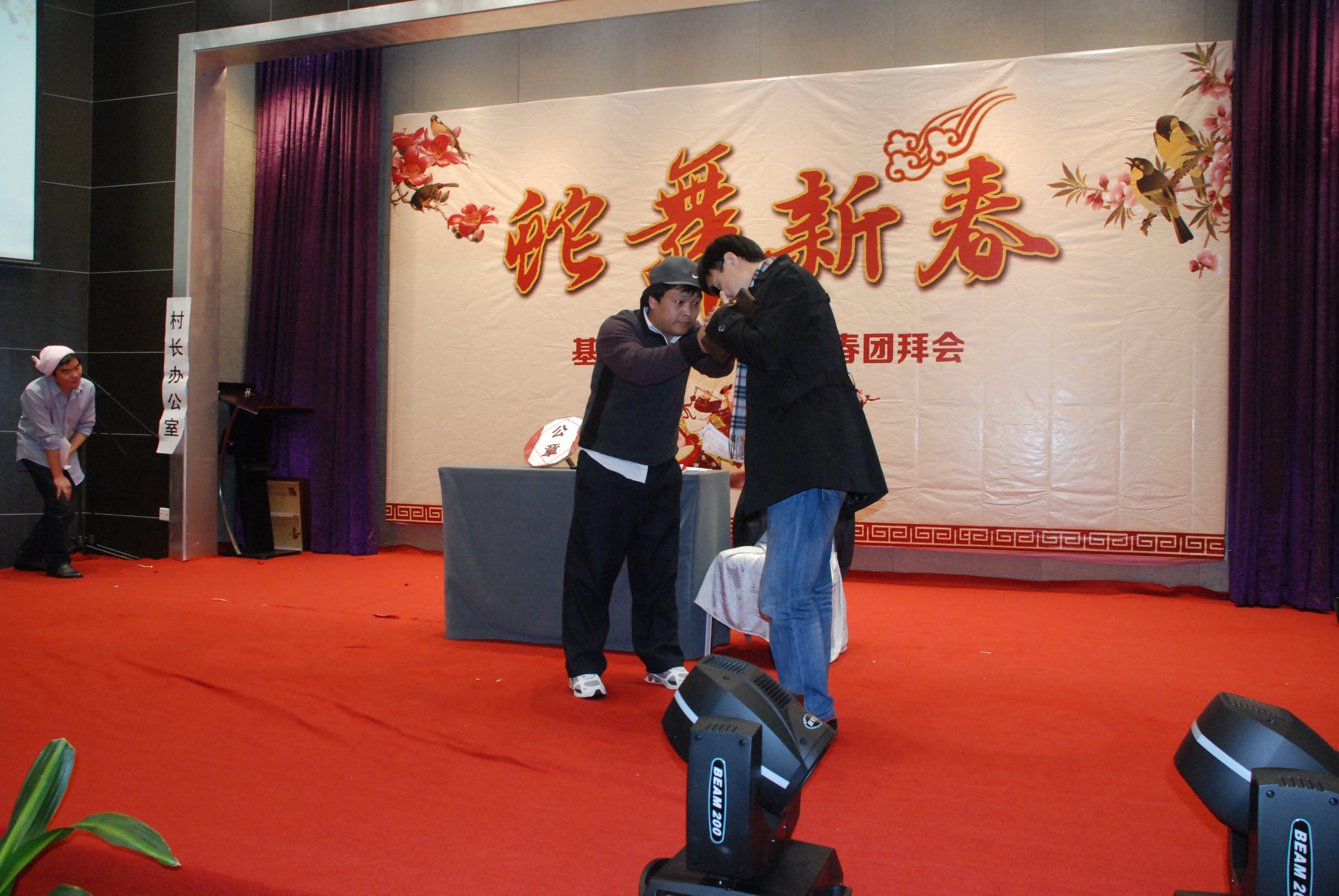 會上,集團公司各分(子)公司、各部門、項目部分別表演了的精彩紛呈的文藝節(jié)目。財務資產(chǎn)部的開場節(jié)目激光水鼓《銀蛇鬧春》氣勢磅礴,豪邁威武,贏得滿堂彩;辦公室表演的金翅舞《大展宏圖》也引發(fā)陣陣尖叫聲;工程管理部的小品《蓋章》詼諧幽默,演出到位,令在座人員捧腹大笑,掀起團拜會一個小高潮;海寧項目部的小品《非誠勿擾》與投資管理部的舞臺劇《女駙馬》,在給大家?guī)須g笑的同事,更帶來愉悅的視覺享受,展示了基投員工的活力與創(chuàng)造力。而穿插在各個節(jié)目中的《恭喜發(fā)財》等互動游戲也生動有趣,既豐富了團拜會內(nèi)容,更將現(xiàn)場的歡樂氣氛不斷推向高潮。