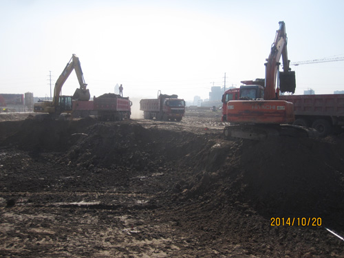 10月18日, 由我公司投資建設(shè)的上虞市高鐵新城城市綜合體項(xiàng)目道路工程(稱山北路、康居路、康亭路下穿箱涵)BT工程兩座下穿箱涵北側(cè)基坑開挖。