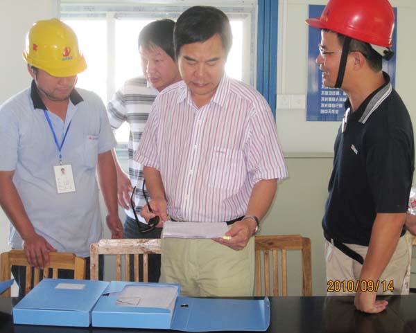 我公司水閣中學(xué)項(xiàng)目負(fù)責(zé)人曾國(guó)壽向蔡小華副市長(zhǎng)一行詳細(xì)介紹了工地建設(shè)情況,并陪同檢查了施工現(xiàn)場(chǎng)安全文明建設(shè)情況。在施工現(xiàn)場(chǎng),蔡副市長(zhǎng)在聽(tīng)取完施工單位負(fù)責(zé)人匯報(bào)后,叮囑施工單位一定要把安全建設(shè)放在工程各項(xiàng)工作的首位,切實(shí)落實(shí)并保障民工人生安全。隨后,蔡副市長(zhǎng)一行還認(rèn)真檢查了施工單位安全資料記錄組卷到位情況。(水閣中學(xué)項(xiàng)目部 金承帥  供稿)