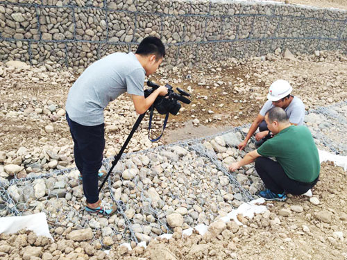 麗陽(yáng)溪水系綜合整治工程第一工程段采用格賓石籠擋墻的施工工藝,在麗水市區(qū)屬于首次采用,因此受到了記者們的格外關(guān)注。(麗水項(xiàng)目部 李璐 供稿)
