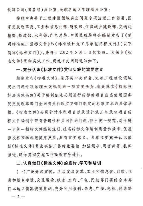 關(guān)于做好《簡明標(biāo)準(zhǔn)施工招標(biāo)文件》和《標(biāo)準(zhǔn)設(shè)計施工總承包招標(biāo)文件》貫徹實施工作的通知